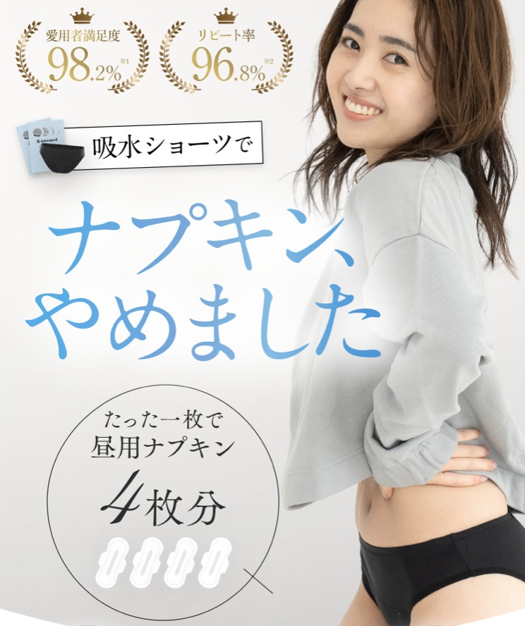 『たった1枚で昼用ナプキン4枚分!』という触れ込みのアンドムーンドの生理用吸水ショーツ!