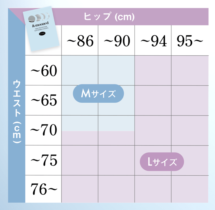 とはいえ、サイズが小さすぎると締め付けによる巡りの阻害の原因に、大きすぎると漏れの原因になる可能性があるので、ウエストやヒップサイズは現在のモノをしっかり測ってから購入するようにしてください。