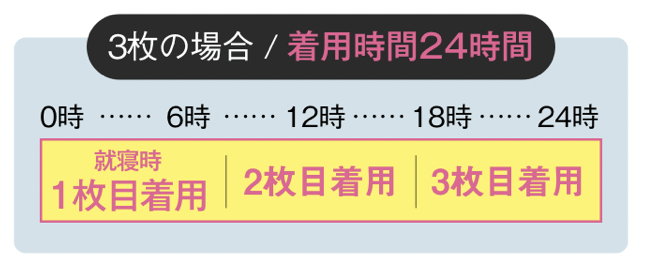 使用時間は1枚あたり8~12時間なので日中や睡眠中は1枚でOKです。