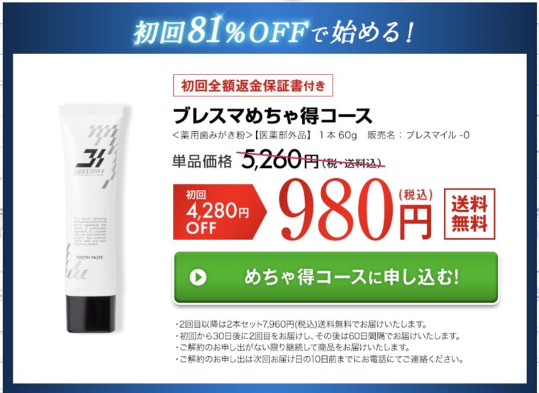 SNSなどの口コミで大人気な薬用歯磨き粉の「ブレスマイルクリア」。