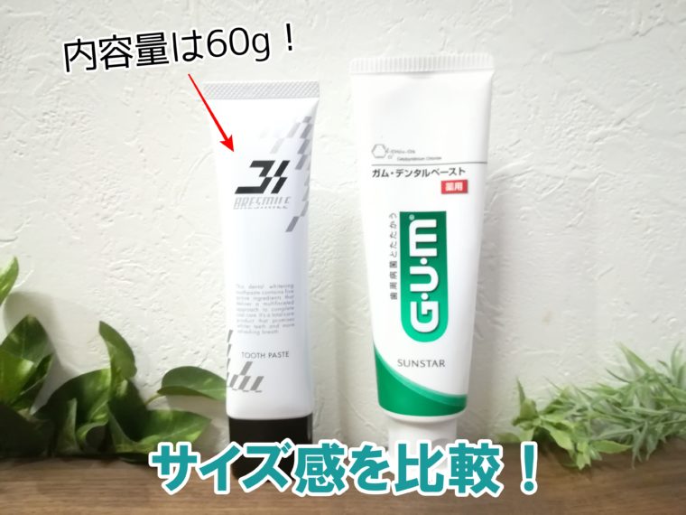 元々使っていた歯磨き粉と並べてみるとサイズ感はこんな感じ。