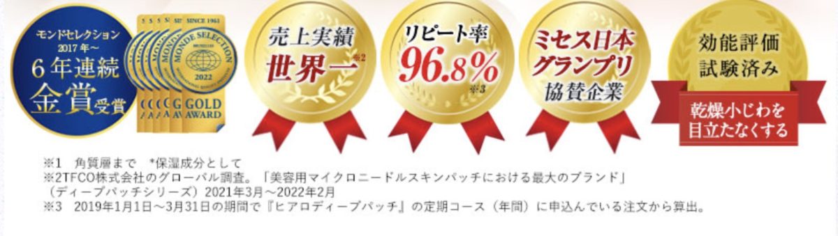 それぞれとても優秀なアイテムですが、成分にサービス内容、そして値段と、どれを比較してみてもヒアロディープパッチが断トツです!