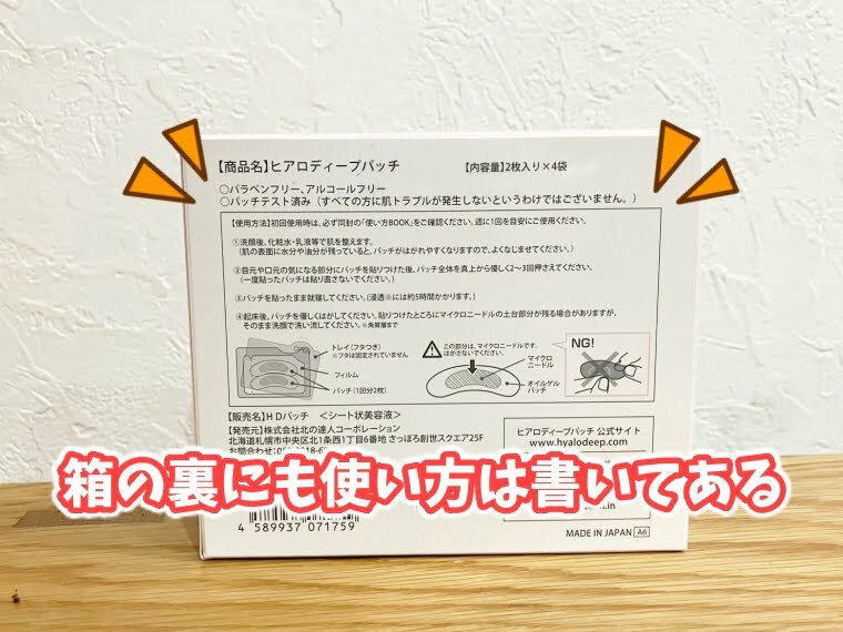 [jin_icon_answertxt color=”#e9546b” size=”16px”]アレルギーをお持ちの方はヒアロディープパッチを使用する前に、全成分をチェックしてからお使いください。