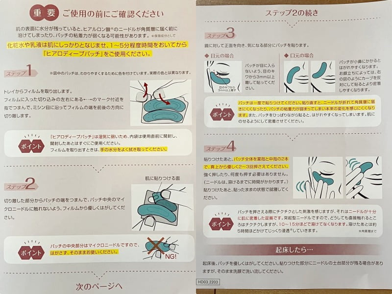 ヒアロディープパッチは目に見えないサイズとはいえ、針を肌に刺しながらケアするアイテムです…。