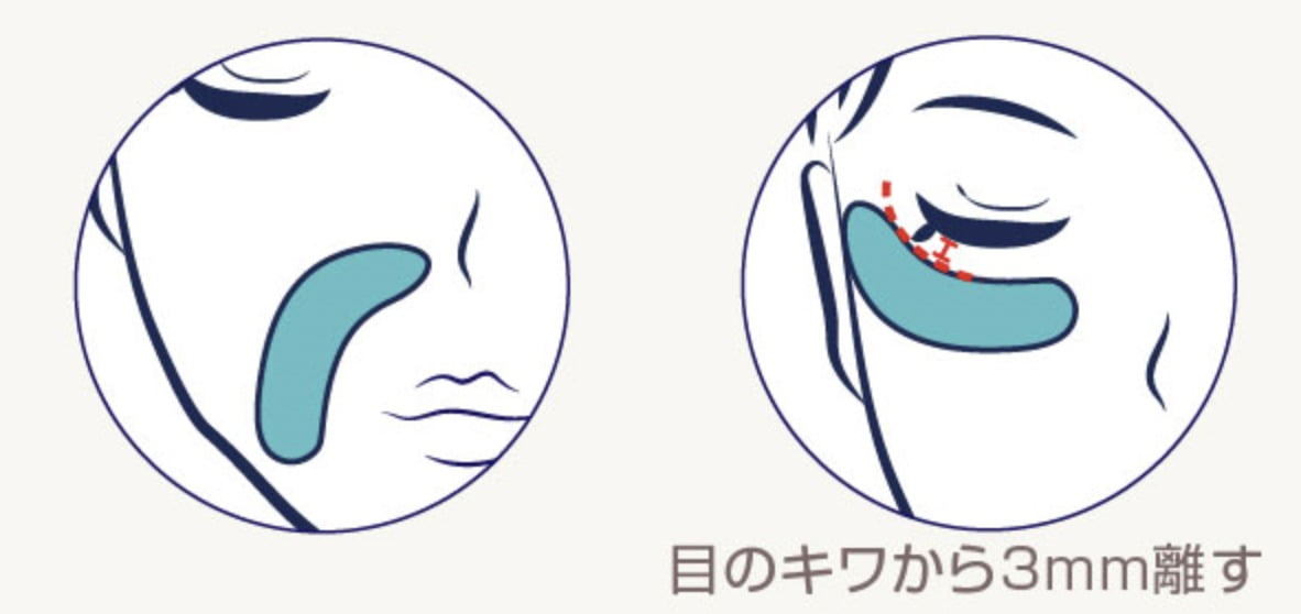目元の場合:パッチの端を目のキワから3mm以上離して貼りましょう。