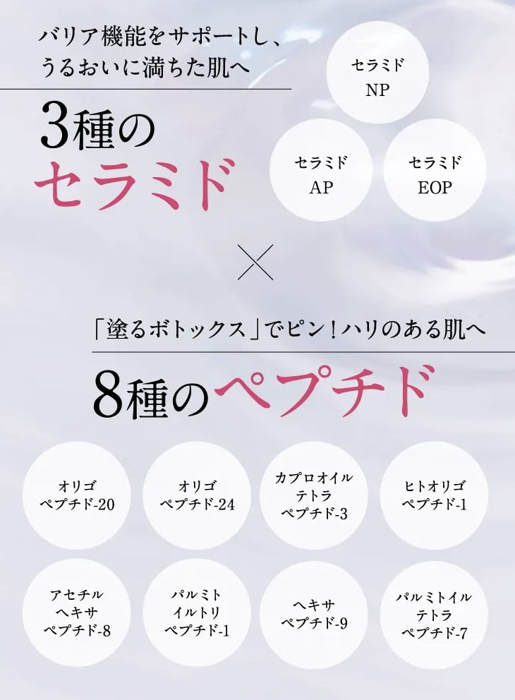| こんな悩みに対応 | お肌の乾燥、たるみ、くすみ、年齢肌の悩み |