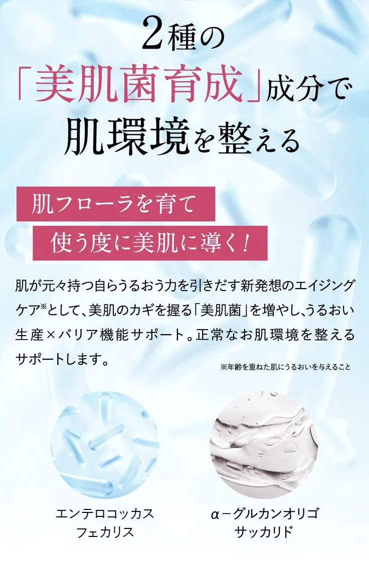 肌フローラを整えながら、肌にうるおいを生み出したり、バリア機能を高めたりと健やかな肌環境へとサポートしてくれます!
