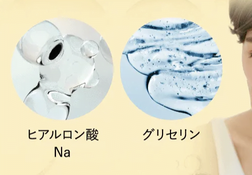 さらに、高保湿成分として配合されている「ヒアルロン酸Na」と「グリセリン」が、カサカサしがちな乾燥肌にしっとりとした潤いをチャージ!
