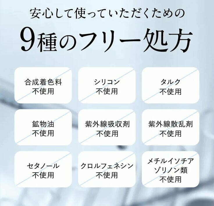 安全性もバッチリ!お肌に優しい9つの無添加!