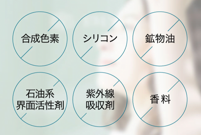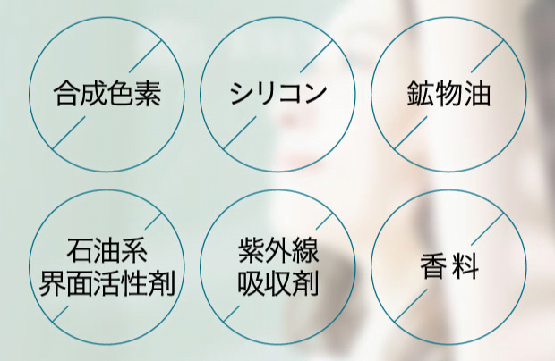 [jin-iconbox03]6つのフリー:紫外線吸収剤、合成色素、シリコン、鉱物油、石油系界面活性剤、香料[/jin-iconbox03]