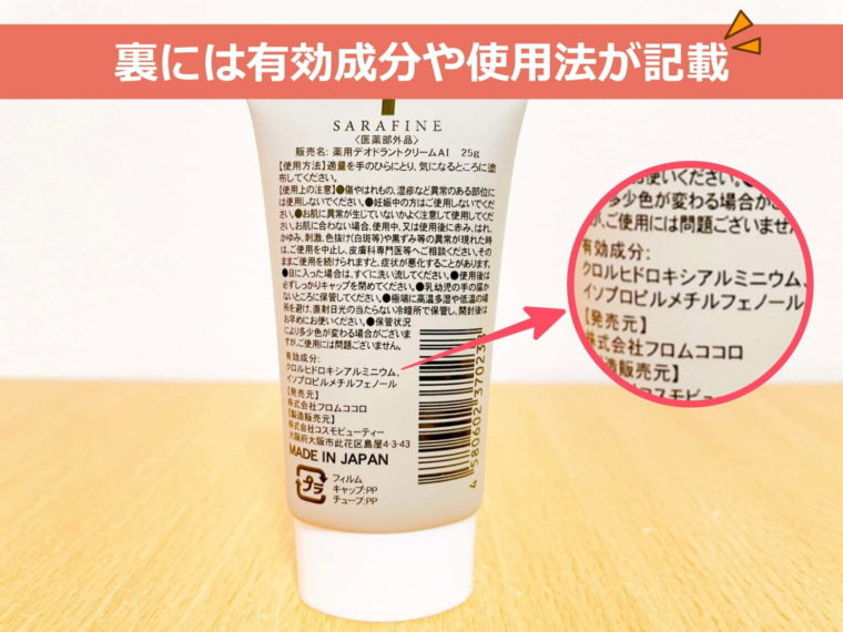 サラフィネの使用法や有効成分などの大切な情報が記載されてます。