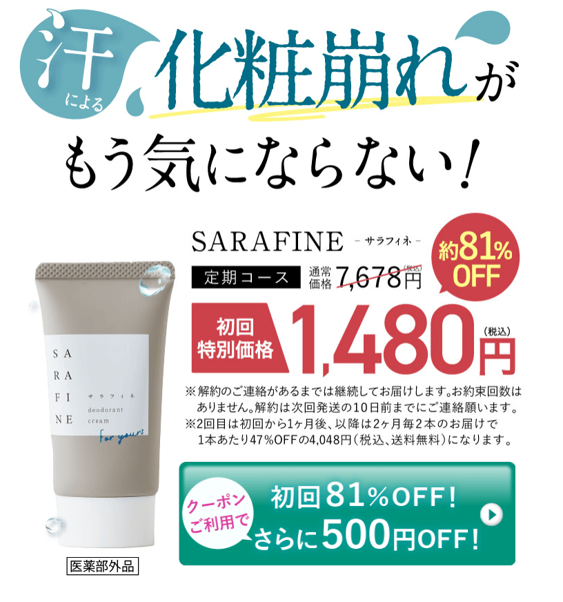 サラフィネ(SARAFINE)は気になる顔汗や汗のニオイを抑える薬用の制汗クリームです。