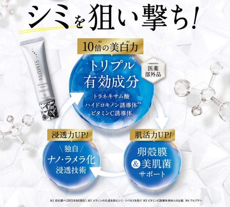 つまりシミュートは新しいシミを予防しつつ、できてしまったシミへの効果も期待できるんです。