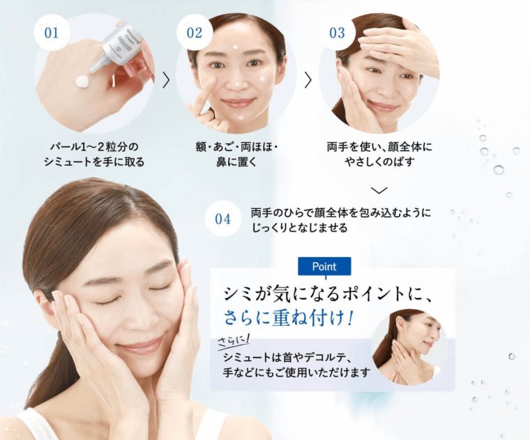 シミュートは普段のスキンケアにプラスするだけなのでとっても簡単☆しっかり使い続けることで、美肌に近づくことができますよ^^