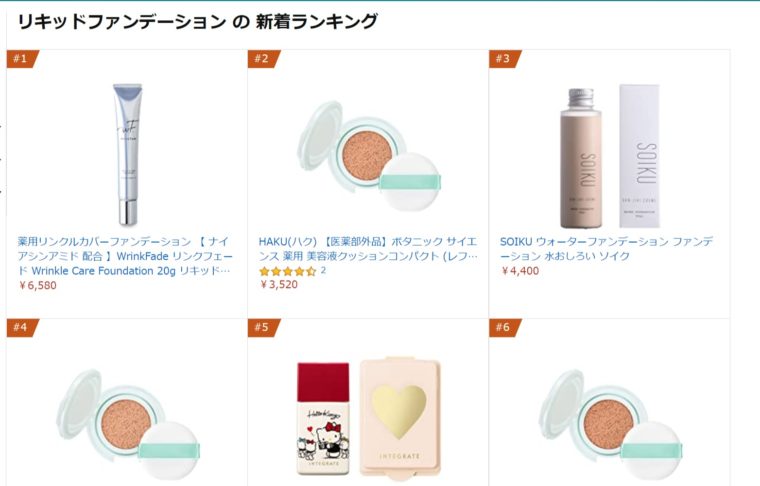 ※リキッドファンデーション 第1位 2021年6月2日集計(2021年6月3日更新) デイリーランキング