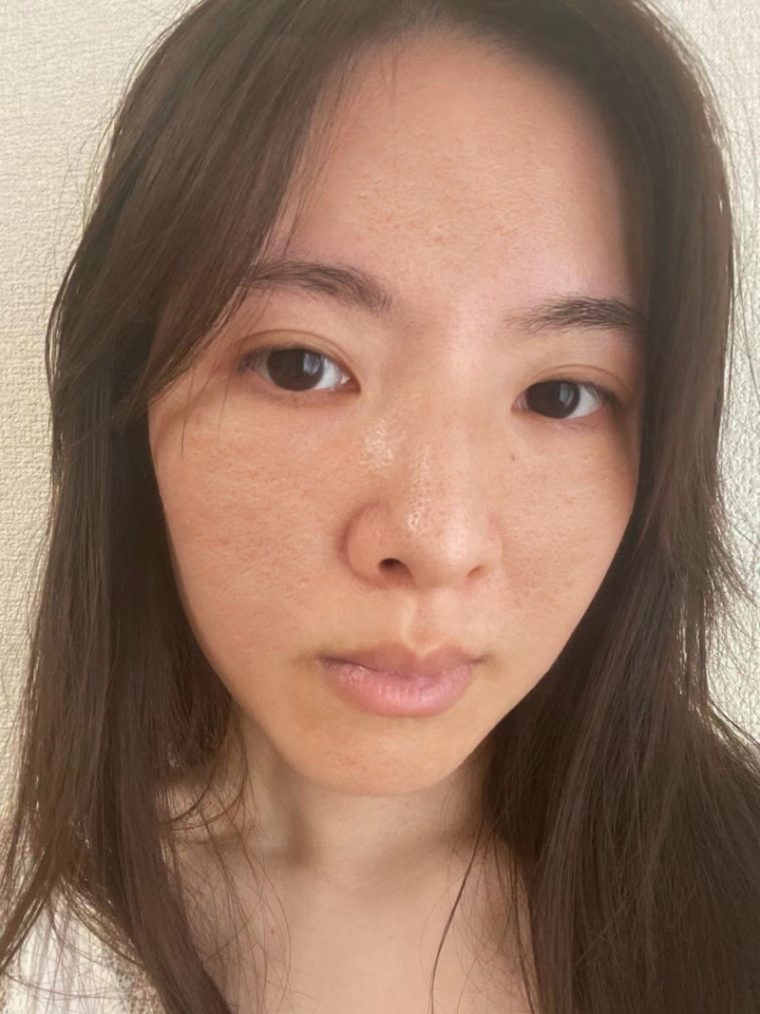 やや暗めの肌色に、肌のデコボコ毛穴が目立っています。