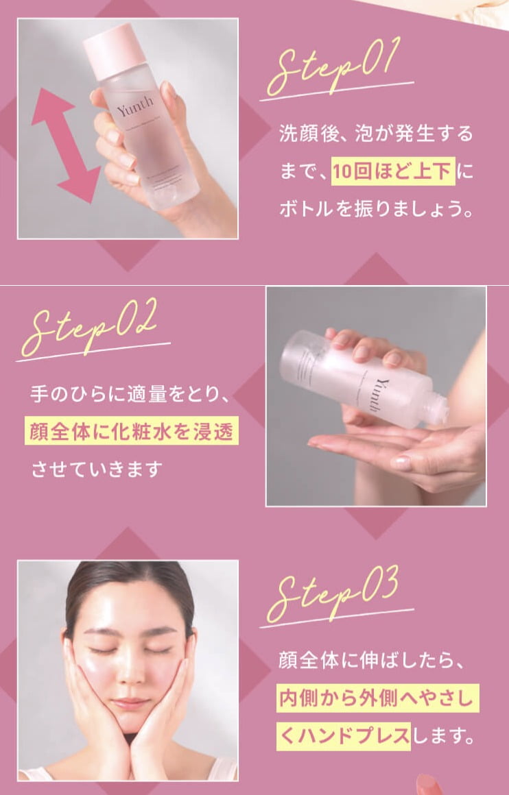 Yunth(ユンス)ナノバブル美白化粧水の使い方はこちら。