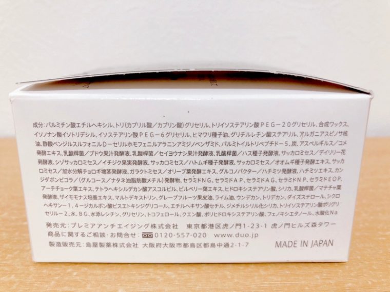 箱の裏にはDUOブラックに含まれている成分が記載されています。