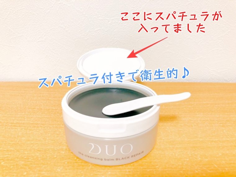 大きめで使いやすいサイズのスパチュラが蓋の内側に入ってます。