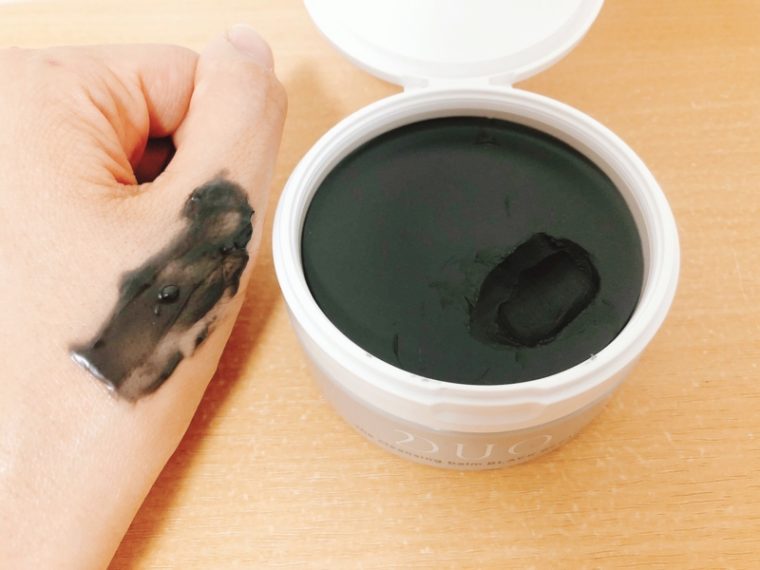 DUOクレンジングバーム ブラックリペアは、肌にのせて馴染ませるとスーッと溶けて、メイクをするすると落とすことができます。