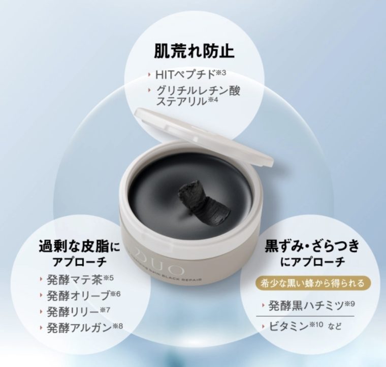 DUOブラックは、メイクや汚れを落とす以外に、美容や保湿成分がたっぷり配合されています。