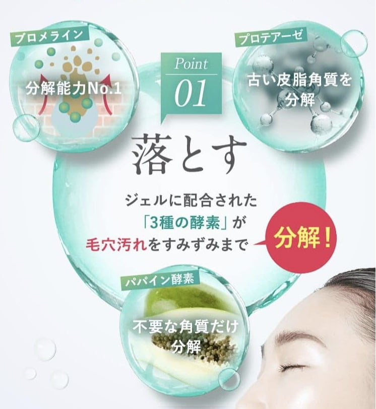 ユレイル カプセルクレンジングジェルは、ただ落とすだけじゃなく、まずは3種の酵素によって毛穴汚れを落としやすい状態になるまで分解!