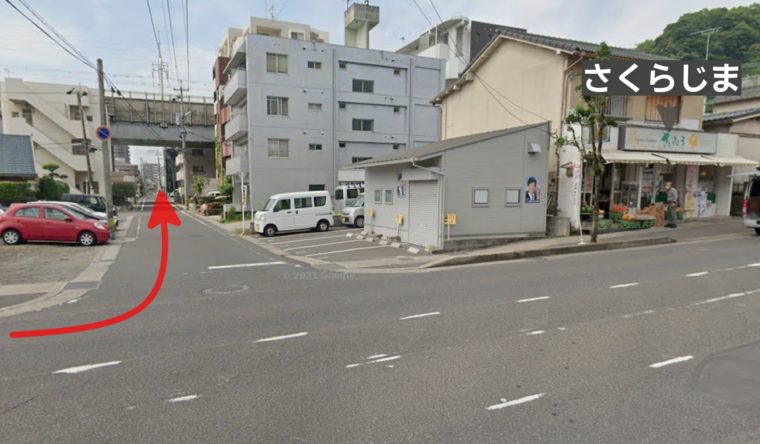 「フルーツ&ジェラートさくらじま」の手前を左に曲がります。