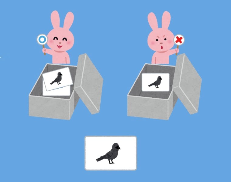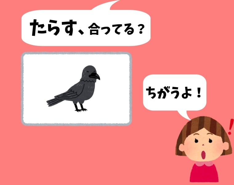 (例:カラスのカード×10枚) - ママがその単語を言ってみて、正しいか間違ってるかを判断させる。