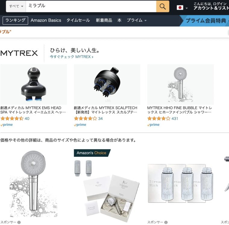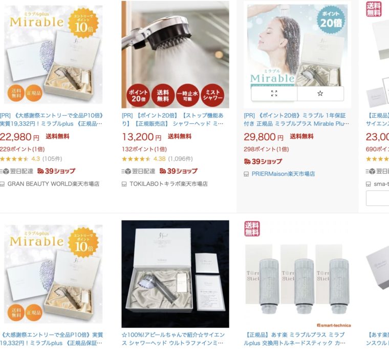現在、残念ながら楽天やアマゾン、yahooショッピングでミラブルの「正規代理店」は見つけられませんでした。