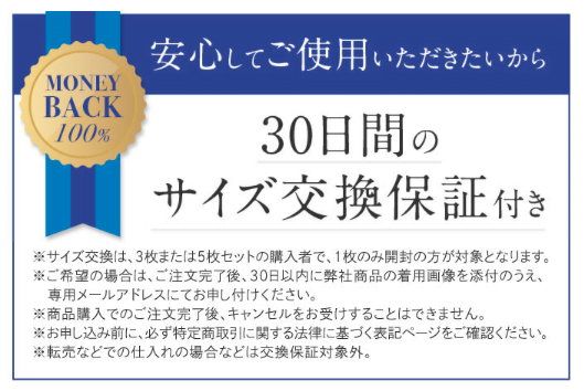 1枚当たりの単価が安くなるだけでなく、複数枚セット購入の場合は30日間のサイズ交換保証が付いています。