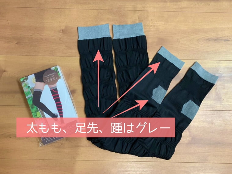 太ももと脚先、踵がグレーになっています。個人的には真っ黒が好みだけど、グレーもおしゃれだし可愛い。