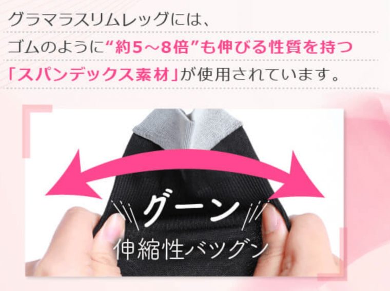グラマラスリムレッグは10段階の着圧でむくみやすい脚に適度な圧を掛けることでほっそり見せる効果が期待できます。
