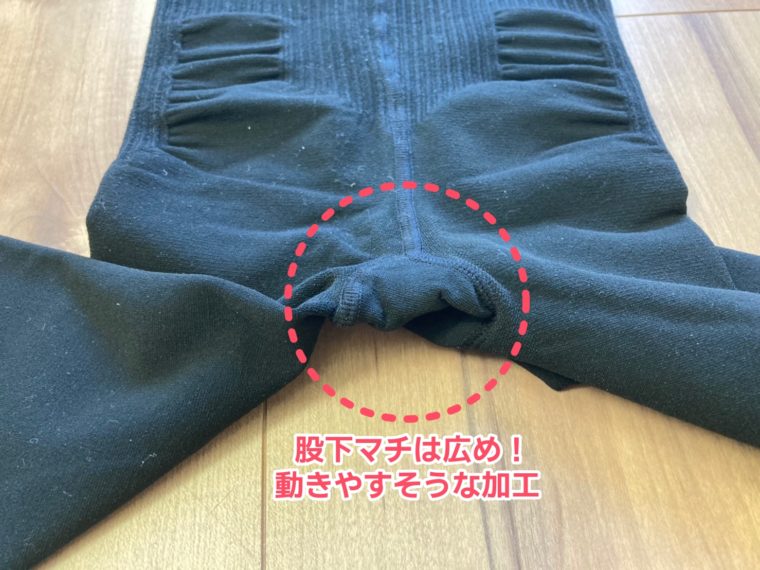 ここの股の部分がパーンとなってると、動きにくかったり破れやすかったりするので、こういう立体的な作りは動きやすそうで良いなと思いました。