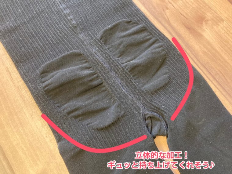それと矢印みたいな縦の編み込みは、ちょうど下っ腹周りに当たるところなので、ぽっこり下腹を抑える効果も期待できそうですね♪