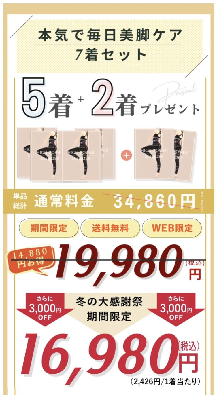 価格だけ見るとスリムウォークが1番安いですが、着圧レギンスとしての性能や防寒性に優れ、防寒性の備わったコスパのいい着圧レギンスを求めているなら、ハイパワースレンダーがおすすめです。