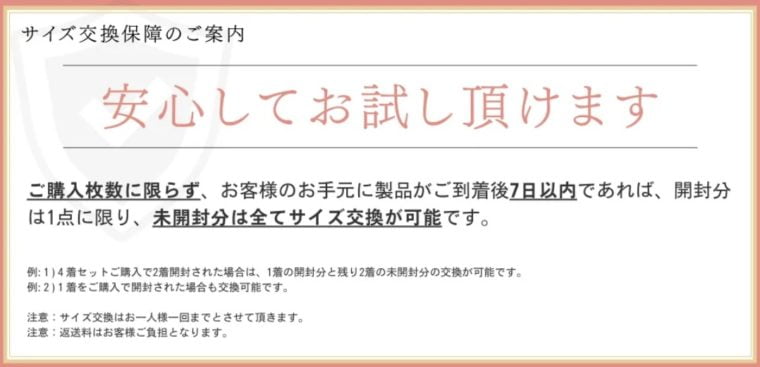 サイズ交換保証つき