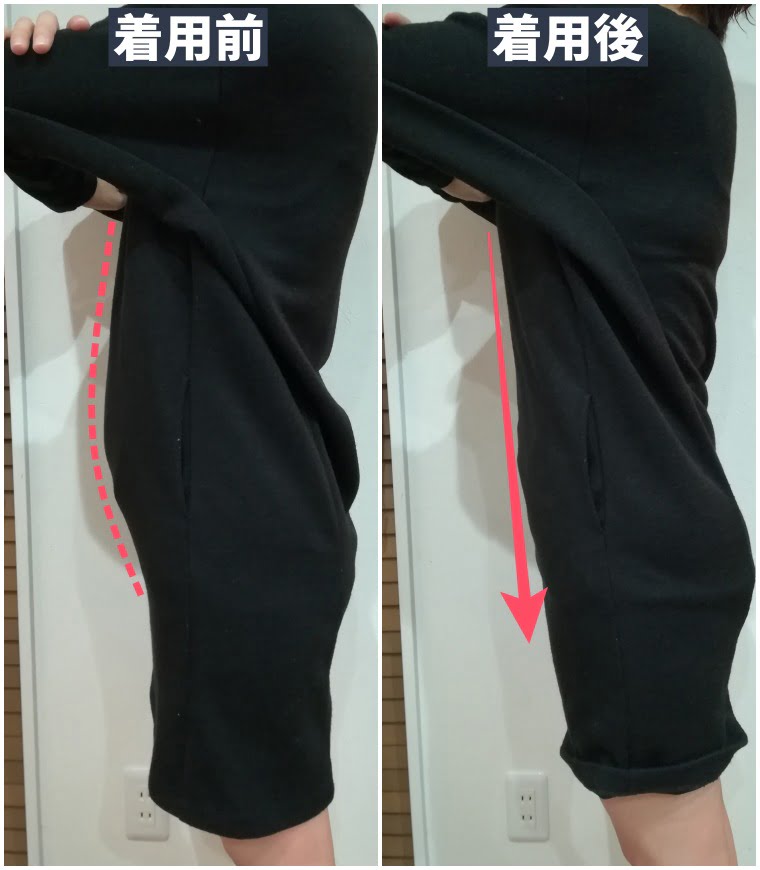 このように気になっていた下腹は、着た瞬間にスッキリしたスタイルに早変わり