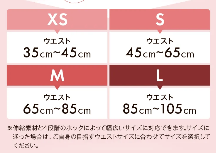 こちらのサイズ表にもあるように、プリンセススリムの対応できるウエスト上限は105cmです。