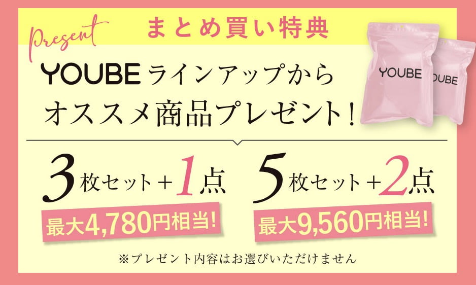 - 公式だとYOUBEラインナップの商品が特典で付いてくる
