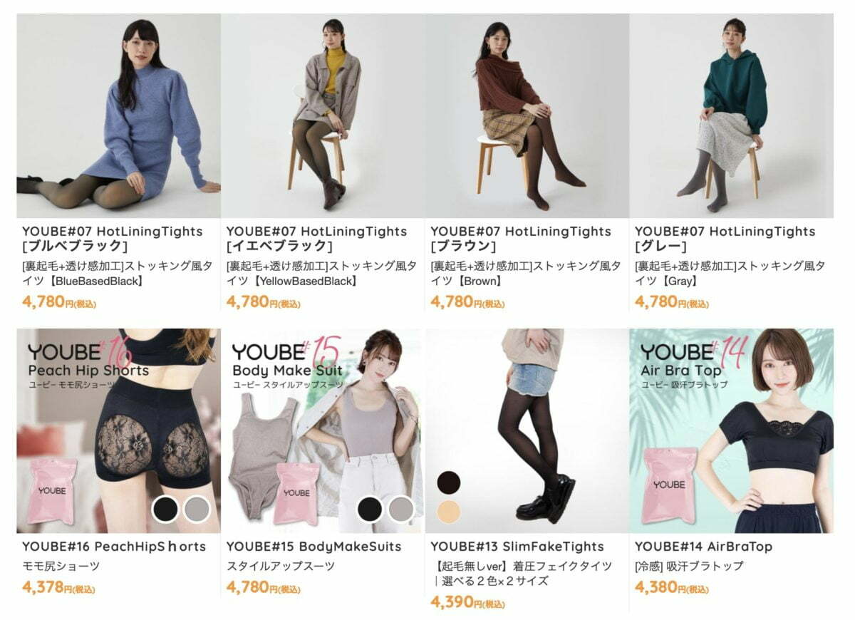 YOUBE(ユービー)タイツを公式でまとめ買いすると、YOUBEラインナップからオススメ商品をもらうことができます。