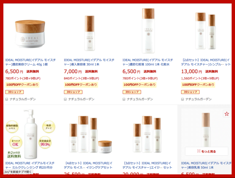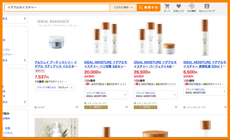 イデアルモイスチャーを大手通販サイトで検索してみると、取り扱いはされていますが、どれも通常価格での販売です。