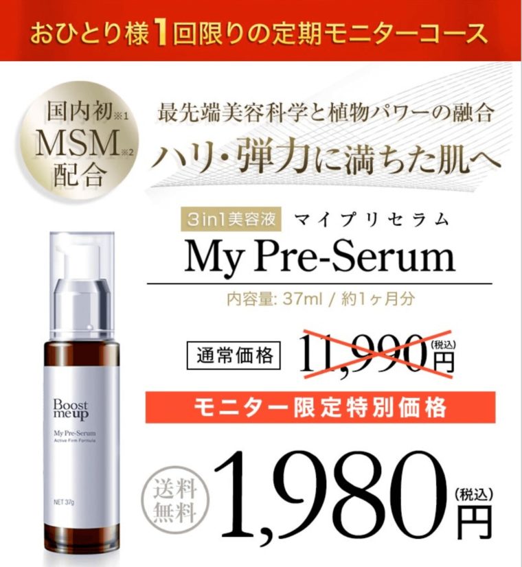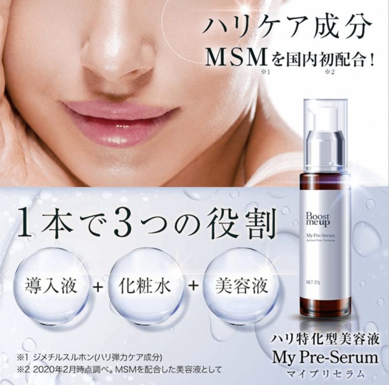 マイプリセラムは最先端美容成分のMSMを国内初配合した美容液です。