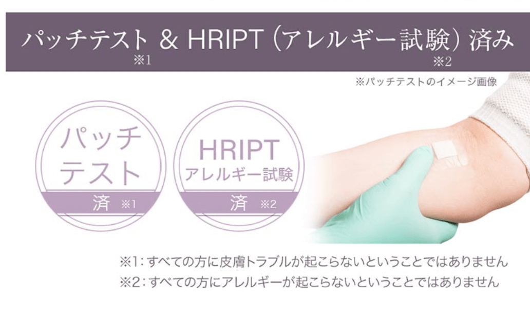 | 安全性 | パッチテスト&HRIPT(アレルギー試験)済み |
