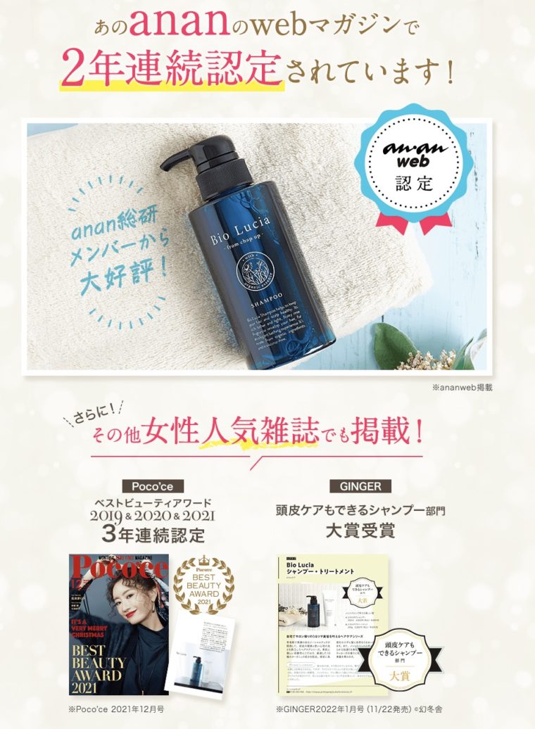 ビオルチアシャンプーは毛髪診断士22人が開発した大人の髪悩みにアプローチする人気ノンシリコンシャンプーです。