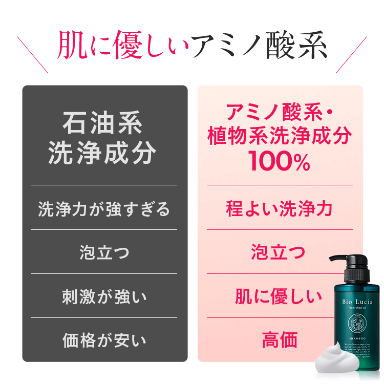 - ビオルチアシャンプーはノンシリコン・弱酸性・アミノ酸系のシャンプー