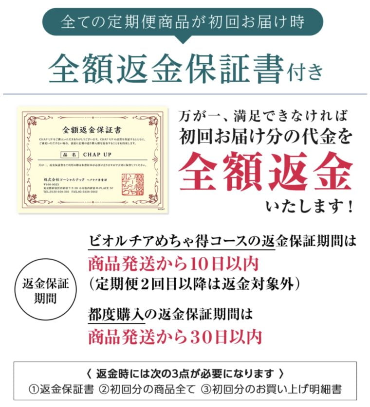 [jin_icon_answertxt color=”#e9546b” size=”16px”]全額返金保証を利用されてる場合以下の3点が必要になりますので、ご到着後には破棄せず保管しておくことをおすすめします。