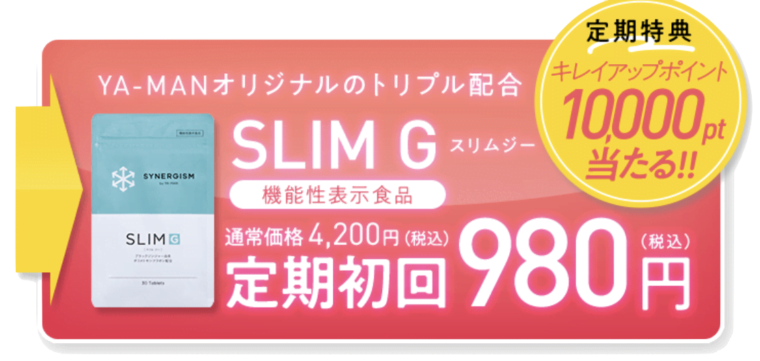年々痩せにくくなってきた私が今回ダイエットのお供に選んだのが、美容メーカーで有名なヤーマンの脂肪燃焼サプリSLIM G(スリムジー)です。