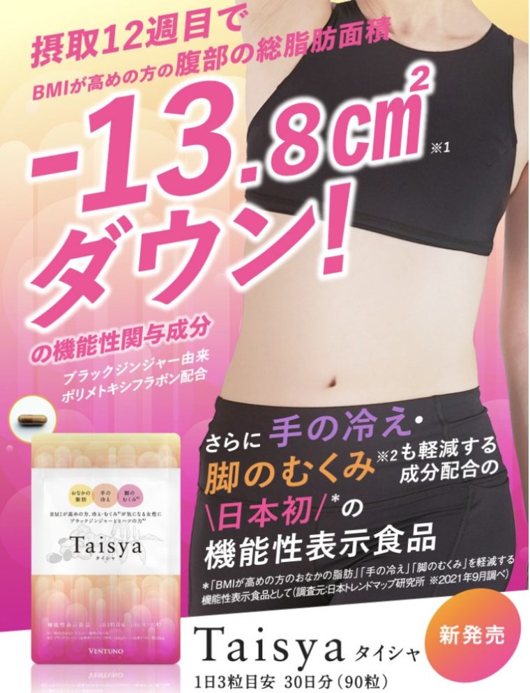 ヴェントゥーノ タイシャはBMIが高めの方、冷えやむくみが気になる女性のための機能性表示食品です[/chat]