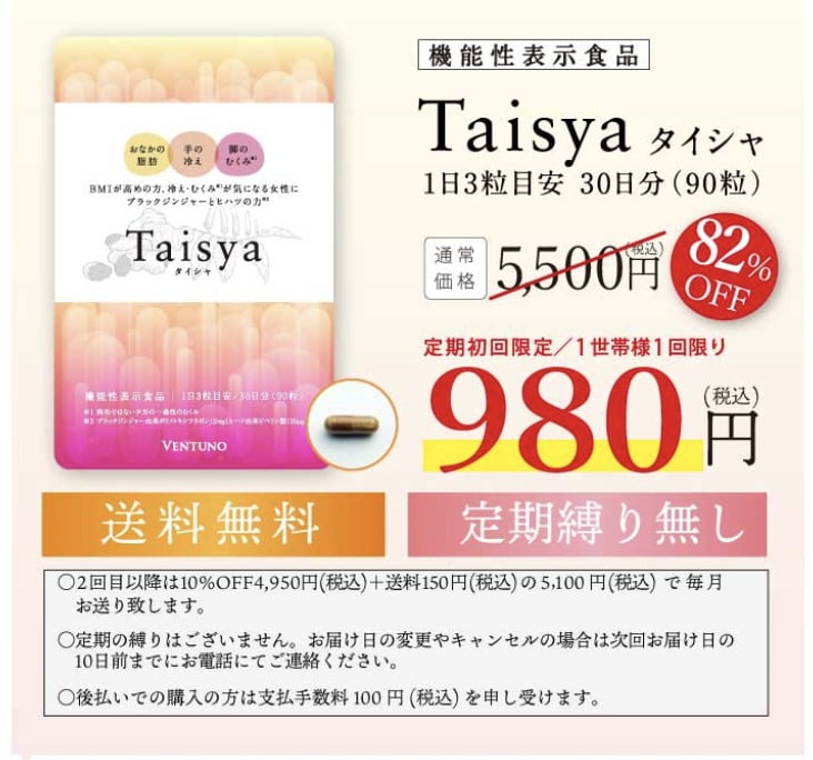 タイシャは楽天やアマゾンにYahooでも売ってますが、公式サイトが断トツで安いので、もし購入を考えているなら公式サイトを覗いてみてください。