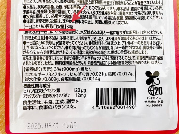 1粒だけでも飲むとポカポカします!代謝も上がってる感じはするけど、1週間くらいでは体重もウエストサイズも少ししか変わりませんね。続けると良い変化が出ると信じて使ってみます。